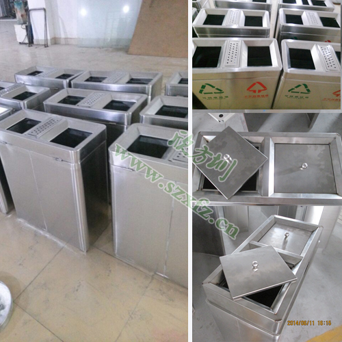 這批C185分類環(huán)保垃圾桶是采用304#優(yōu)質(zhì)不銹鋼材料模壓成型,厚度足1.2mm,里面配置了厚度為0.4mm的鍍鋅板內(nèi)桶,堅固耐用,不易破損。垃圾桶外觀為方形,閃爍著金屬的亮澤,高雅美觀,在制作方面也有精良的做工,注重細節(jié)的處理,做到無利口,不傷手! 桶身雙分類,正面絲印有“不可回收”和“其他垃圾”的分類標志,具有耐火安全,抗高低溫,適合各種惡劣氣候條件,再加上產(chǎn)品表面光滑,亮麗廣泛適用于各種場所,是電梯口、寫字樓、學校、物業(yè)、賓館、酒店、機場、汽車站等擺放場地的首選。