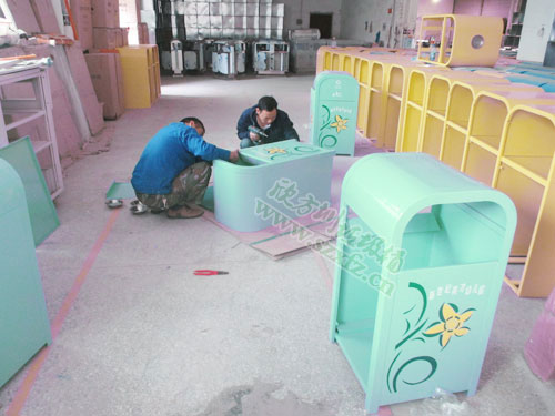 幼兒園的鍍鋅烤漆鋼制垃圾桶采用冷軋鋼材料,外框鍍鋅鋼厚度為2mm;內(nèi)膽鍍鋅鐵皮厚0.5mm; 外桶L550*W550*540*H1030MM;新做滴鍍鋅烤漆垃圾桶,搖蓋式雙面投遞,上面絲印工藝的印花保持3到4年。還絲印有不可回收垃圾,英文 字母及環(huán)保標(biāo)志等。五年以上的熟練老員工,經(jīng)剪鈑下料、折彎、沖壓、焊接、打磨、等工藝:表面經(jīng)過除油、噴砂防銹處理后,再進(jìn)行酸洗磷化處理;表面清理干燥后整體進(jìn)行靜電噴涂或烤漆處理,靜電噴涂是經(jīng)過流水線高溫固化爐固化后再出爐冷卻,加工后的塑粉附著力強(qiáng),不易剝落。