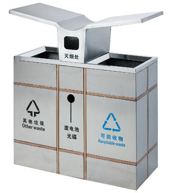 深圳新標(biāo)準(zhǔn)城中村街道社區(qū)不銹鋼五分類垃圾桶由有害垃圾、玻璃、金塑紙(為金屬、塑料、紙張的簡(jiǎn)稱)、廚余垃圾、其他垃圾這5分類不銹鋼垃圾桶組合而成。其中金塑紙、其他垃圾日常產(chǎn)生量較大,所以分類收集容器也
