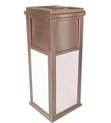 欣方圳為深圳嶺南天潤物業(yè)公司提供了一批室內(nèi)垃圾桶,材質(zhì)有鈦金類和鐵板噴塑類,外觀精美,使用價值高。 D272皇家座地煙灰桶規(guī)格:300*300*685,D295垃圾桶的規(guī)格為310*310*740,采用不銹鋼經(jīng)鍍鈦處理,專業(yè)除