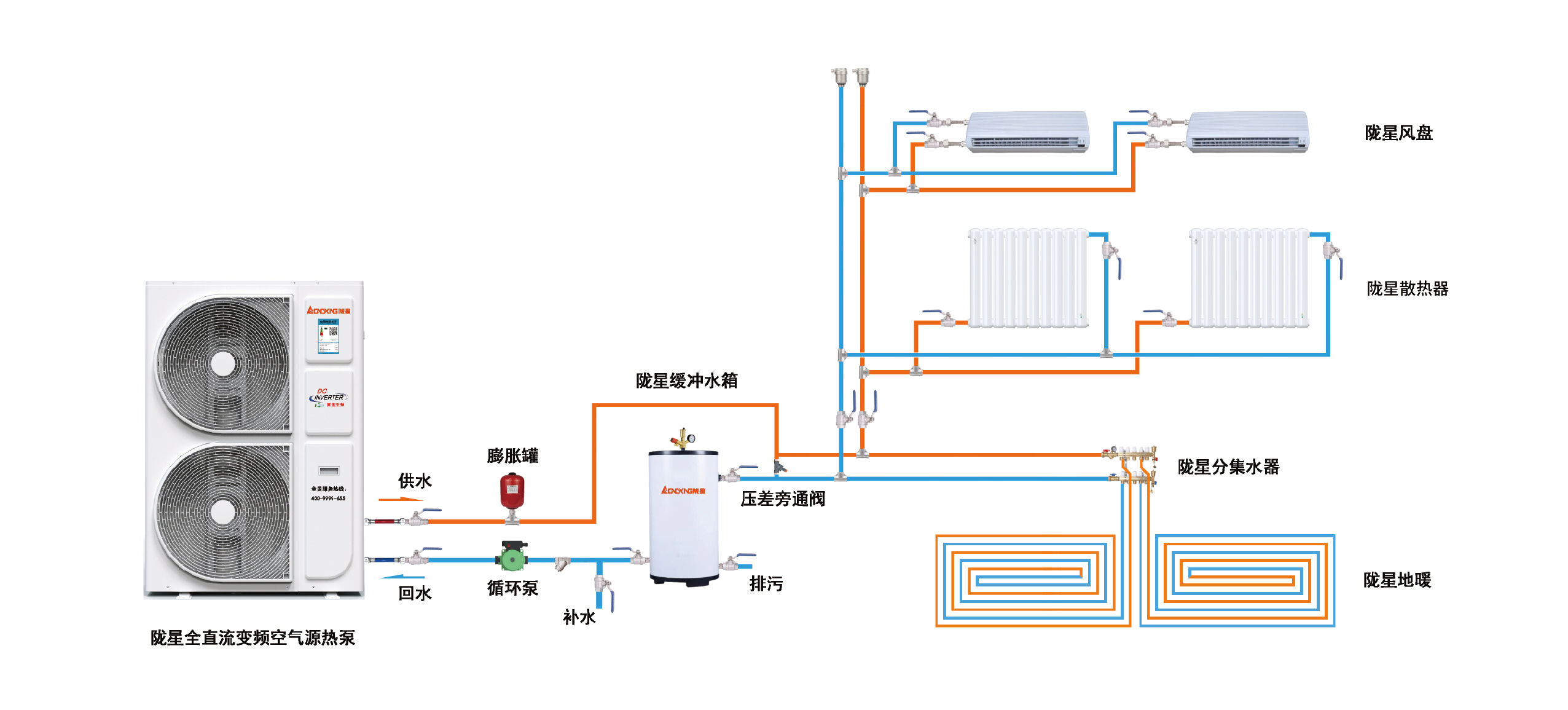 隴星將給客戶(hù)提供空氣能采暖“一站式六包服務(wù)”——包測(cè)量、包設(shè)計(jì)、包主材、包輔材、包施工、包售后,讓客戶(hù)真正做到省時(shí)、省心、省力、更省錢(qián)!