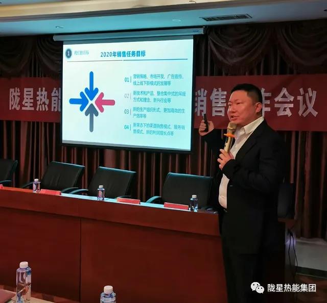4月21日至22日,隴星熱能科技公司2020年銷售工作會議,在隴星大廈20層大會議室召開。隴星集團(tuán)總經(jīng)理、隴星熱能科技公司董事長吳茂原先生,集團(tuán)副總、隴星熱能科技公司總經(jīng)理趙明珠先生,集團(tuán)副總吳茂瓏先生,作為集團(tuán)領(lǐng)導(dǎo)出席會議。隴星熱能科技公司負(fù)責(zé)生產(chǎn)、銷售的副總經(jīng)理以及各分公司、各職能部門、銷售部門的全體員工參加了此次會議。