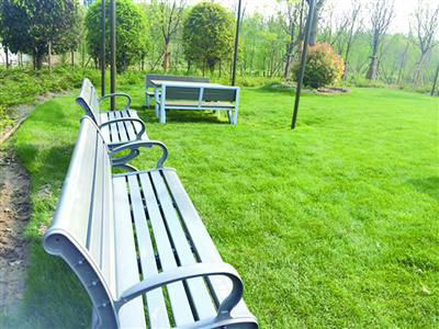 占地69.5萬平方米的生態(tài)園是上海國際旅游度假區(qū)的組成部分。行走在園內,記者發(fā)現(xiàn),這個生態(tài)園基本保留了川沙農村的自然風貌,曾經鄉(xiāng)村的小河蜿蜒流淌,河邊蘆葦叢叢。而仔細看會發(fā)現(xiàn),道路旁、草坪上的靠背長椅上標注著:本長椅由3700個牛奶飲料紙包裝再生利用制成;垃圾桶上標注著:我是用900個牛奶飲料紙包裝再生利用制成的哦。