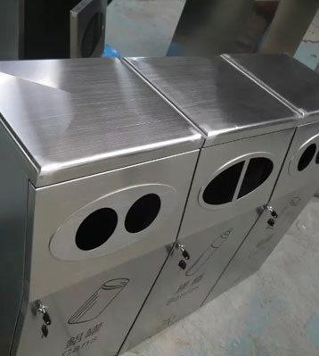 欣方圳不銹鋼三分類環(huán)保回收桶工廠生產(chǎn)圖
