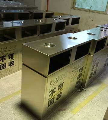 欣方圳不銹鋼室內(nèi)分類垃圾桶工廠成品圖