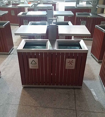 欣方圳園林鋼木垃圾桶工廠生產(chǎn)圖
