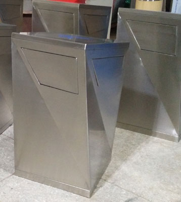 樓盤不銹鋼多面造型垃圾桶批量生產(chǎn)圖