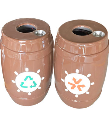 • 產(chǎn)品名稱:景區(qū)玻璃鋼仿木桶組合分類垃圾桶