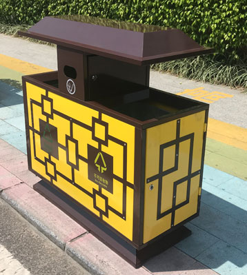 欣方圳戶外仿古典風(fēng)分類垃圾箱細(xì)節(jié)展示