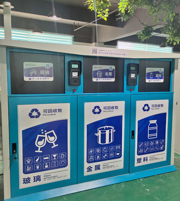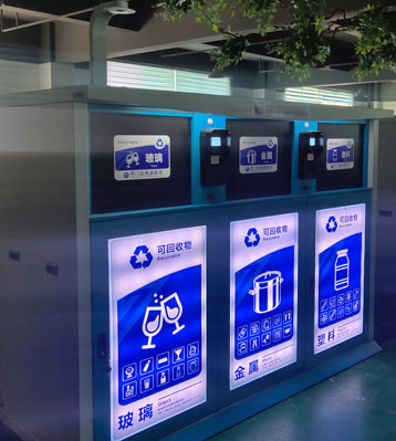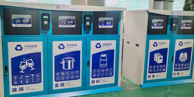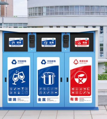 • 產(chǎn)品特點(diǎn):社區(qū)智能分類垃圾桶回收紙張、塑料、金屬、玻璃、紡物、有害、廚余、其他等八種常見可回收再生資源。內(nèi)置智能自動稱重模塊,后臺時(shí)刻檢測回收箱垃圾重量,滿溢自動停用功能并自動發(fā)送預(yù)警信息及時(shí)清運(yùn);帶感光燈控開關(guān)傍晚會自動開啟照亮功能;用戶身份識別系統(tǒng),可追塑垃圾投放來源;帶管理系統(tǒng)積分兌換禮品。