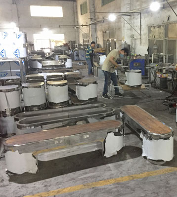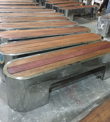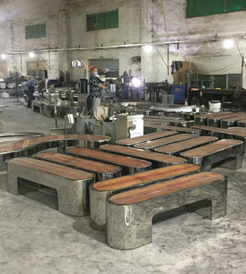 欣方圳不銹鋼長條橢圓休閑椅凳面防腐木材質(zhì)制作流程示意圖,工藝領(lǐng)先,品質(zhì)卓越,真正經(jīng)久耐用。