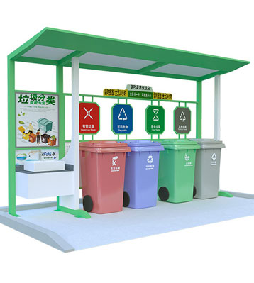 設(shè)有擋雨棚,可配備垃圾箱信息顯示屏、防水照明燈、廣告屏,進(jìn)行地面硬化。對社區(qū)玻金塑紙可回收物,其他垃圾,廚余垃圾,有害垃圾等生活垃圾定時定點投放收集.