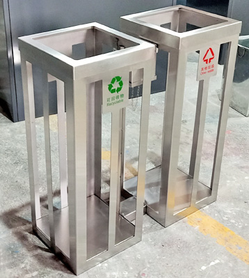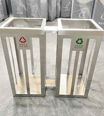 不銹鋼可視垃圾桶方形2分類設(shè)計,足1.45厚304不銹鋼框架四周部分鏤空套垃圾袋,存放什么垃圾一目了然,及時了解排除安全隱患。有帶煙灰柱和不帶兩種款式。