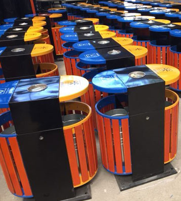 戶外橢圓鋼木分類垃圾桶工廠批量生產(chǎn)圖