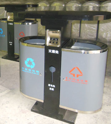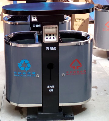 戶(hù)外鋼板分類(lèi)垃圾桶批量生產(chǎn)圖